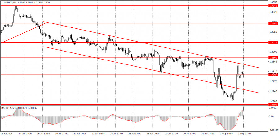 Pár GBP/USD má v hodinovém časovém rámci velkou šanci pokračovat v klesajícím trendu. Britská libra je stále překoupená, dolar je podhodnocený a BoE začala snižovat náklady na úvěry – co ještě je potřeba, aby britská měna pokračovala v poklesu? Makro údaje opět pokazily dokonalý obrázek dolaru. Zároveň ale platí, že neuspokojivé zprávy nepřicházejí z USA každý den a ani Velká Británie nenabízí pokaždé dobré údaje. Přesto není fundamentální pozadí o nic méně důležité než makroekonomické.