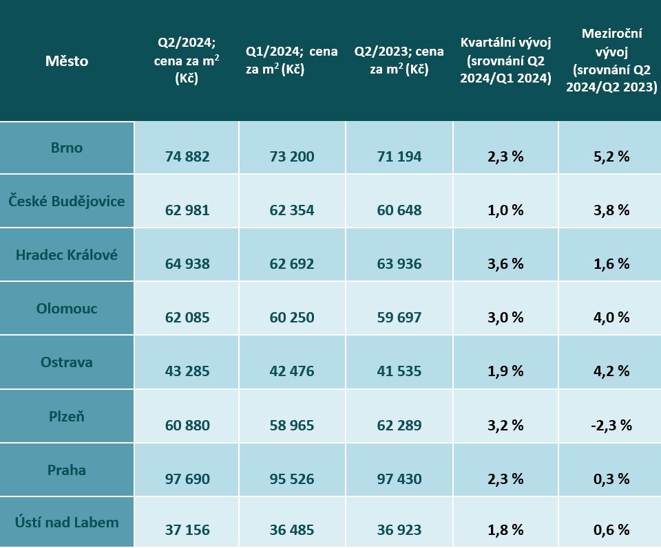 Starší byty v ČR ve 2. čtvrtletí zdražily o 13,4 procenta
