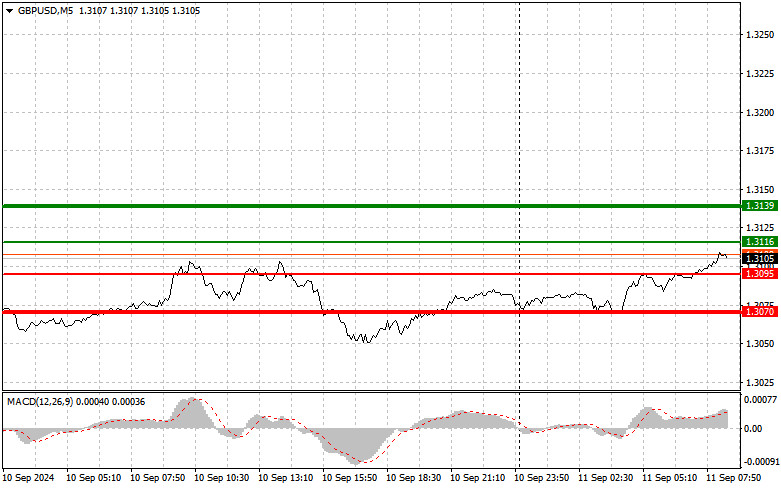 Scénář č. 2: Nákup libry dnes plánuji také v případě dvou po sobě jdoucích testů ceny 1,3095, když bude indikátor MACD v zóně přeprodanosti. Toto omezí potenciál páru klesat a může přinést obrat trhu směrem nahoru. Lze očekávat růst k úrovním 1,3116 a 1,3139.