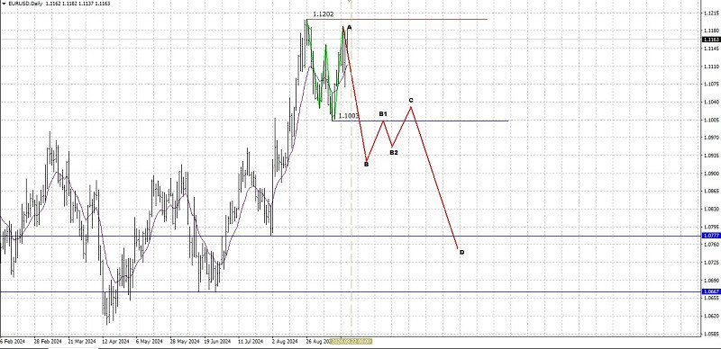 Vlnová analýza denního pohybu ceny hlavního měnového páru EUR/USD, pondělí 23. září 2024