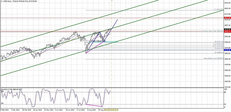 Technická analýza intradenního pohybu ceny indexu S&P 500, čtvrtek 26. září 2024
