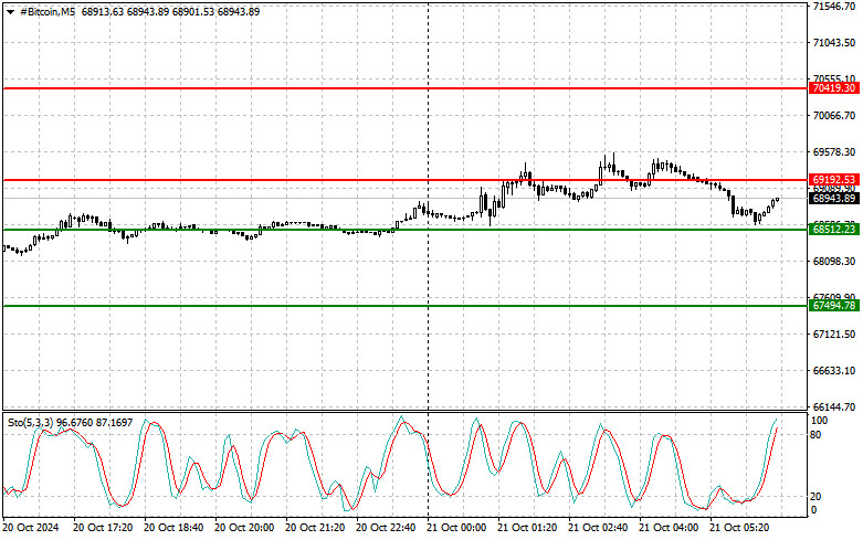 Dnes plánuji koupit bitcoin, jakmile dosáhne vstupního bodu kolem 69 192 USD, s cílem růstu na 70 419 USD. Kolem 70 419 USD z nákupu vystoupím a při odrazu okamžitě prodám. Před nákupem při proražení je vhodné se ujistit, že se ukazatel Stochastic nachází poblíž své spodní hranice, tedy kolem úrovně 20.