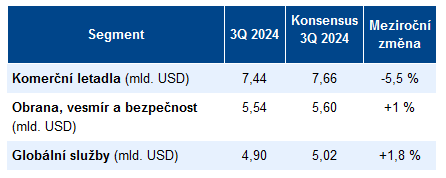 Americký výrobce letadel Boeing reportoval za 3Q 2024. Společnost se potýkala se stávkami zaměstnanců, které negativně ovlivnily výsledky. Záporný očištěný peněžní tok dosáhl vyšších hodnot, než analytici očekávali.
