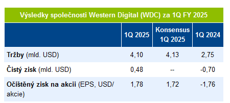 Americká společnost Western Digital, která se zabývá výrobou pevných disků a paměťových medií, dnes oznámila své výsledky hospodaření za první kvartál fiskálního roku 2025, který skončil 27. září 2024. Společnosti výrazně rostla cloudová divize a analytiky potěšil segment flash pamětí, kterému se dařilo nad očekávání.