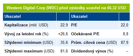 Akcie Western Digital (WDC) v předburzovní fázi roste o 12,3 % na 74,48 USD.