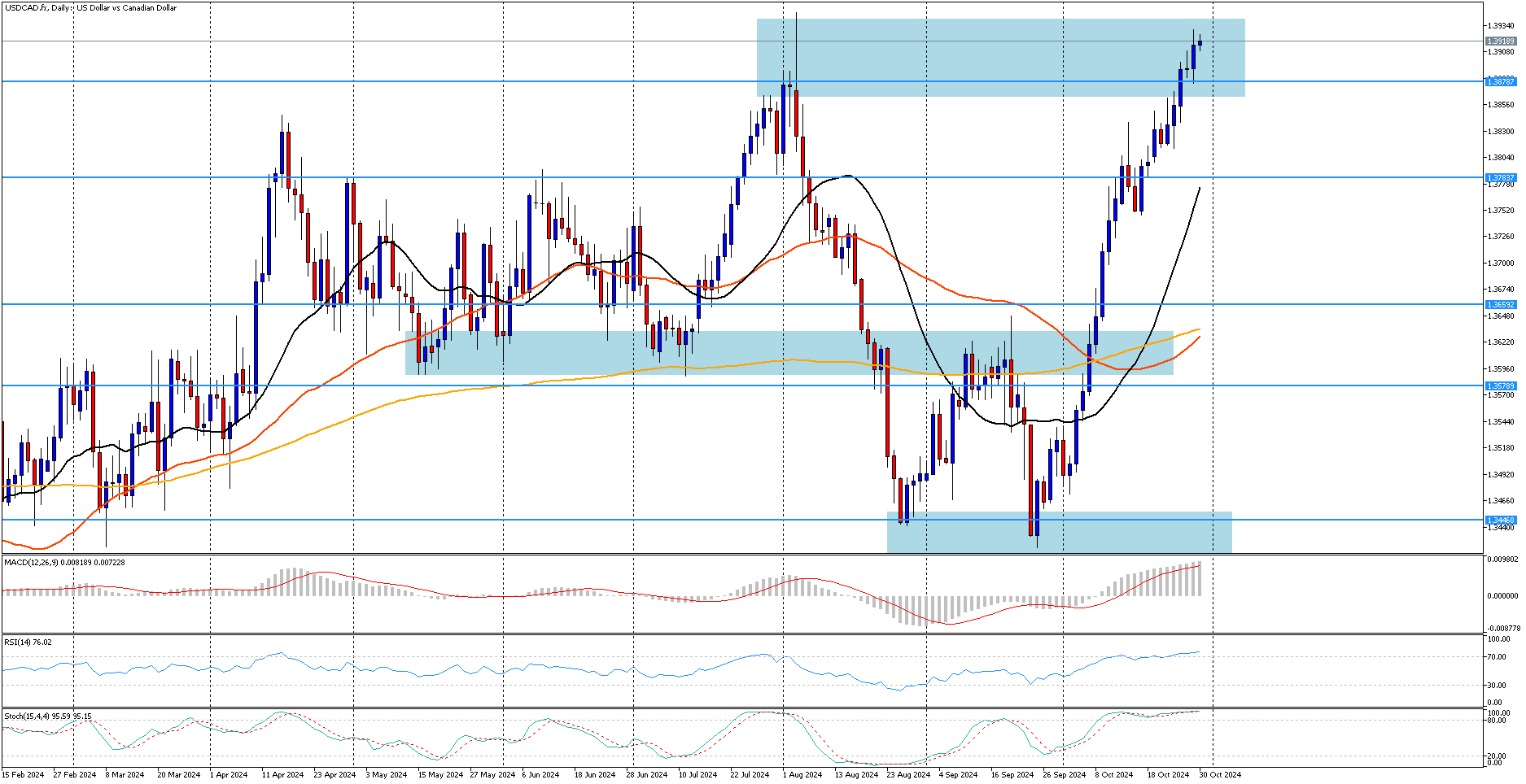 Měnový pár USD/CAD se nezastavuje a míří na sever