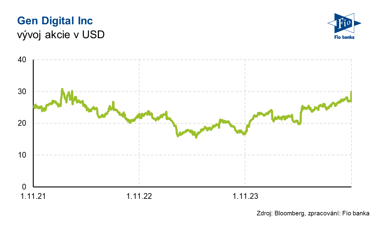 Klíčová slova: Finance | USA | Akcie | Bloomberg | CEO | Zisk na akcii | Analytici | USD | Zisk | Výsledky | Banka | Fio banka | Fio | Odkup akcií | Portfolia | Burze | Výhled | Výnosy | Akcie společnosti | Zpětný odkup akcií | Generální ředitel | Rozvoj | Chudoba | Provozní zisk | Americká společnost | Společnosti | Společnost | Gen Digital | GEN | Vincent Pilette | Digitální život | Akcie Gen Digital | Portfólia | Očištěný zisk na akcii | Fio banka, a.s. | Marek Chudoba |