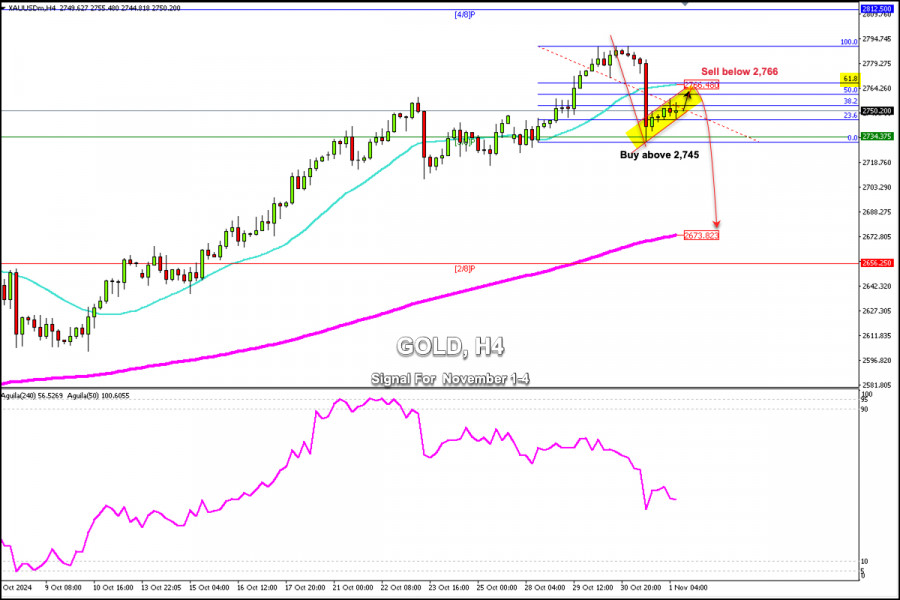 Obchodní signály pro ZLATO (XAU/USD) na 1.–4. listopadu 2024: prodávejte pod 2 766 USD (21 SMA – 61,8 %)