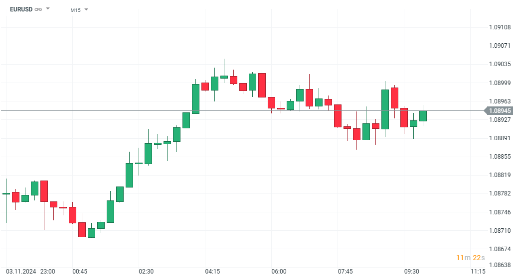 Reakce na kurz EURUSD je omezená, přičemž EURUSD si dnes připsal 0,15 % navzdory relativní slabosti eura. Pozornosti trhu dominuje výrazně slabší dolar a nadcházející volby v USA.