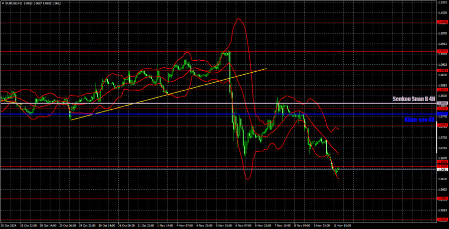 Obchodní doporučení a analýza EUR/USD na 12. listopadu. Dolar neúnavně roste