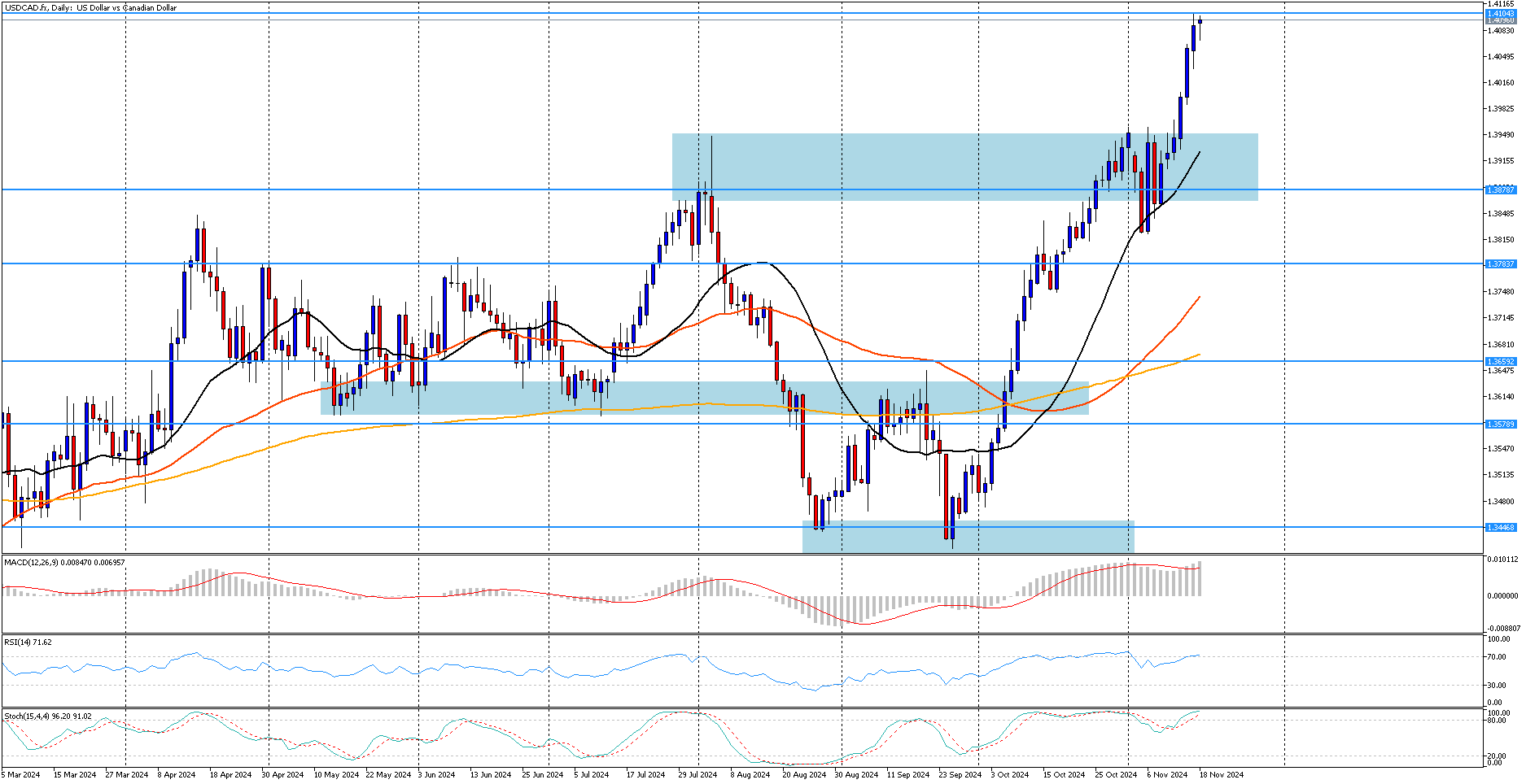 Pár USD/CAD vystoupal na nejvyšší úroveň od října, protože Bank of Canada zůstává stranou