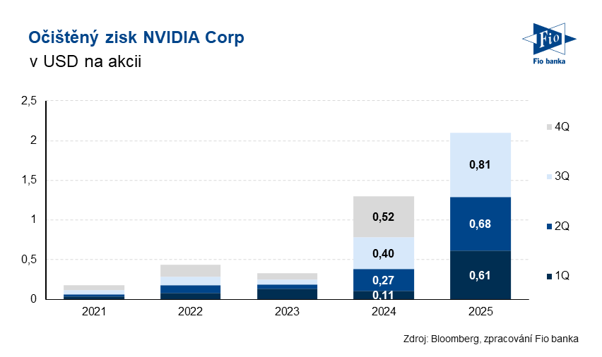 Klíčová slova: Poptávka | Akcie | Bloomberg | CEO | Dividendový výnos | Marže | P/E | Trend | Ukazatel | Výnos | Zisk na akcii | Analytici | USD | JPMorgan | Zisk | Výsledky | Burzy | EPS | Analytika | Banka | Fio banka | Cena | Fio | Cílová cena | Hrubá marže | ROCE | Hospodářské výsledky | Kapitalizace | Výhled | Konsensus | Výnosy | Očekávání analytiků | Očekávání | NVDA | Čistý zisk | Technologická společnost | Pokles | Vývoj | Nvidia Corp | Akcie Nvidia | Umělé inteligence | Vývoj čistého zisku | Nvidia | Vývoj akcie | AI | Odvětví | Divize | Provozní náklady | Vizualizace | Společnosti | Společnost | Výsledky společnosti | Kvartální výhled | 3М | CEO společnosti | Vice | Společnost Nvidia | Americká technologická společnost | Petr Veselý | Očištěný zisk na akcii | Výsledky společnosti Nvidia | Vývoj akcie NVIDIA | Fio banka, a.s. | Nvidia (NVDA) |