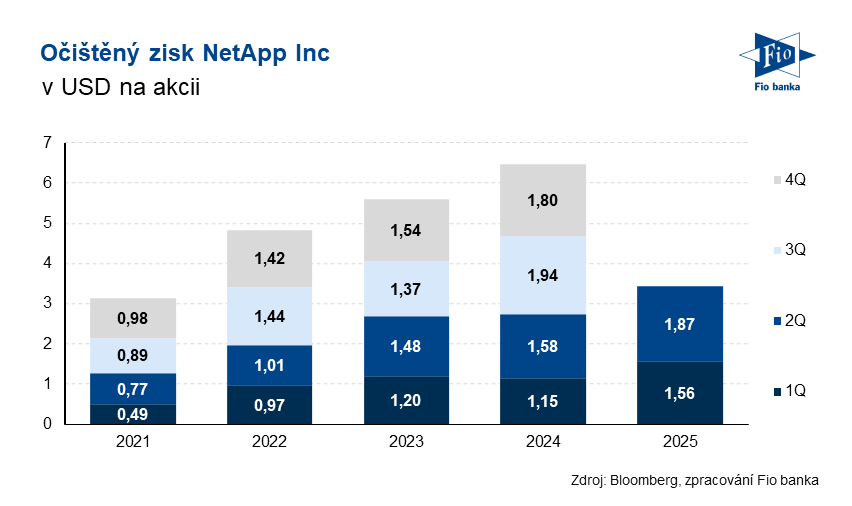Společnost NetApp, která podniká v oblasti inteligentní datové infrastruktury, reportovala výsledky hospodaření za druhý kvartál fiskálního roku 2025. Společnosti meziročně narostly výnosy o 6,1 %. Nejvíce se dařilo segmentu veřejného cloudu. Společnost zvýšila výhled hospodaření.