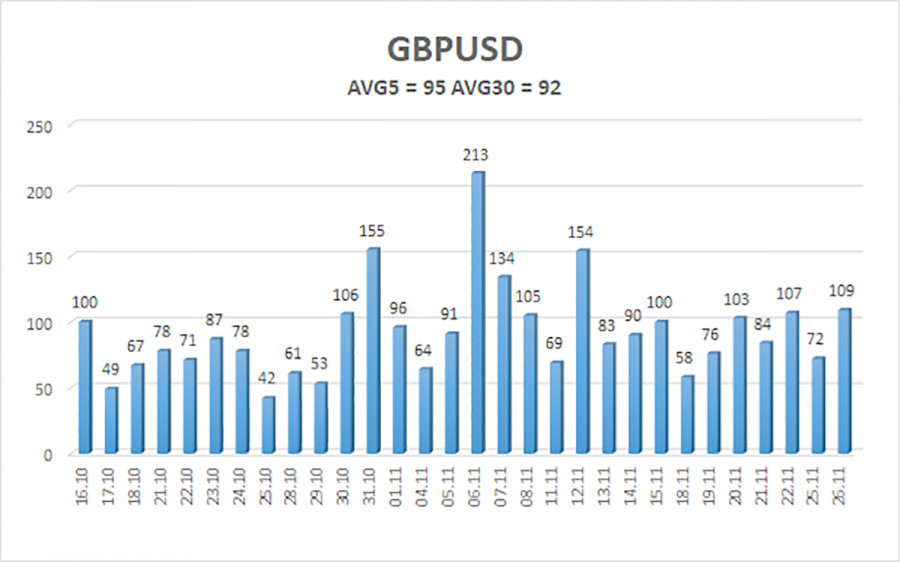 Přehled vývoje měnového páru GBP/USD dne 27. listopadu. Britská libra pokračuje ve svých směšných pokusech o korekci