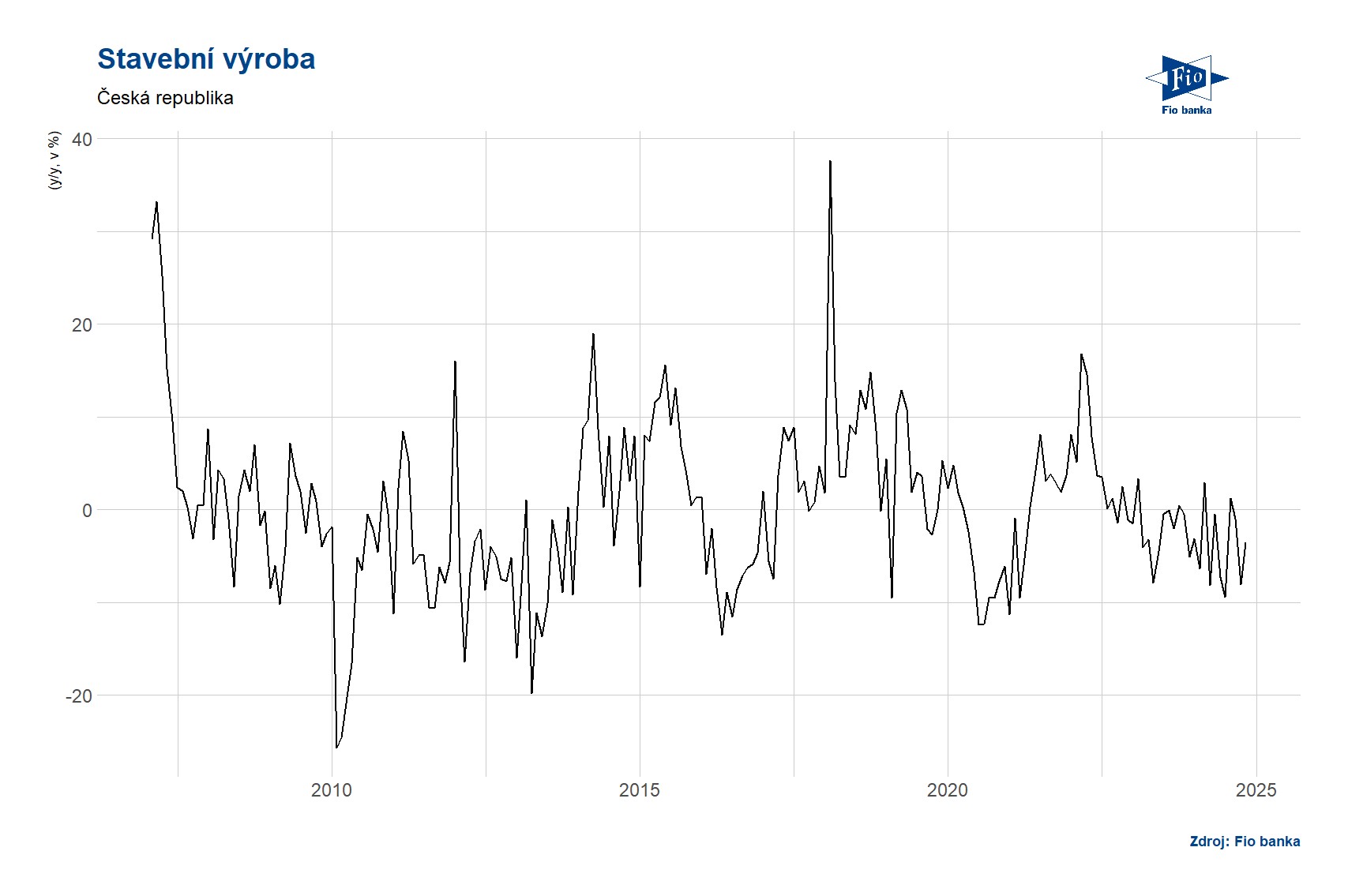 ČR: Stavební výroba v říjnu meziročně klesla o 3,6 %