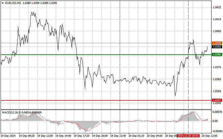 Test úrovně 1,0385 proběhl, když už byl indikátor MACD výrazně nad linií nula, což podle mého názoru omezilo růstový potenciál páru. Z tohoto důvodu jsem upustil od nákupu eura.
