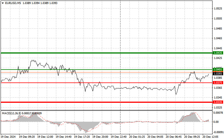 Test cenové úrovně 1,0402 se shodoval s okamžikem, kdy indikátor MACD začínal klesat od linie nula. Uvedené potvrdilo správný vstupní bod k prodeji eura a vedlo k poklesu o 35 pipů. -