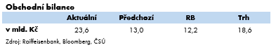 Bilance zahraničního obchodu se v listopadu zvýšila na 23,6 mld. korun oproti revidovaným 16,3 mld. CZK v říjnu. Trhy očekávaly zvýšení na 18,6 mld. korun. -