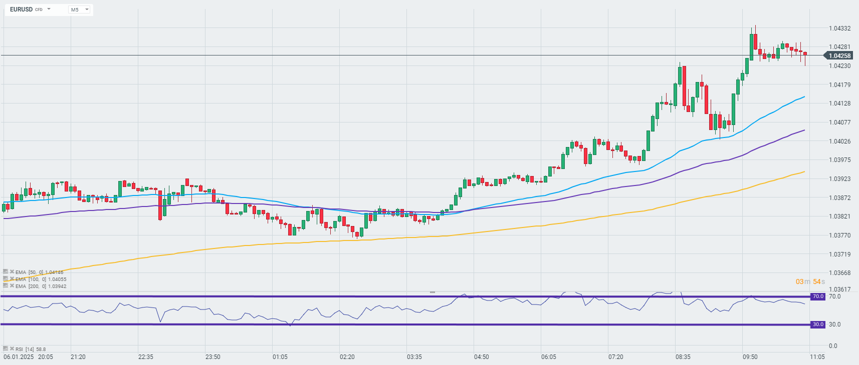 Investorom bol len pred chvíľou ponúknutý balík dát z USA za december. Jadrová inflácia PCE vzrástla viac, ako sa očakávalo, keď sa celková hodnota medziročne vyšplhala na 1,5% (oproti očakávaným 1,3% medziročne). Ukázalo sa, že údaje o osobných príjmoch a osobných výdavkoch boli lepšie, ako sa očakávalo, ale údaje z minulého mesiaca boli revidované nižšie. -