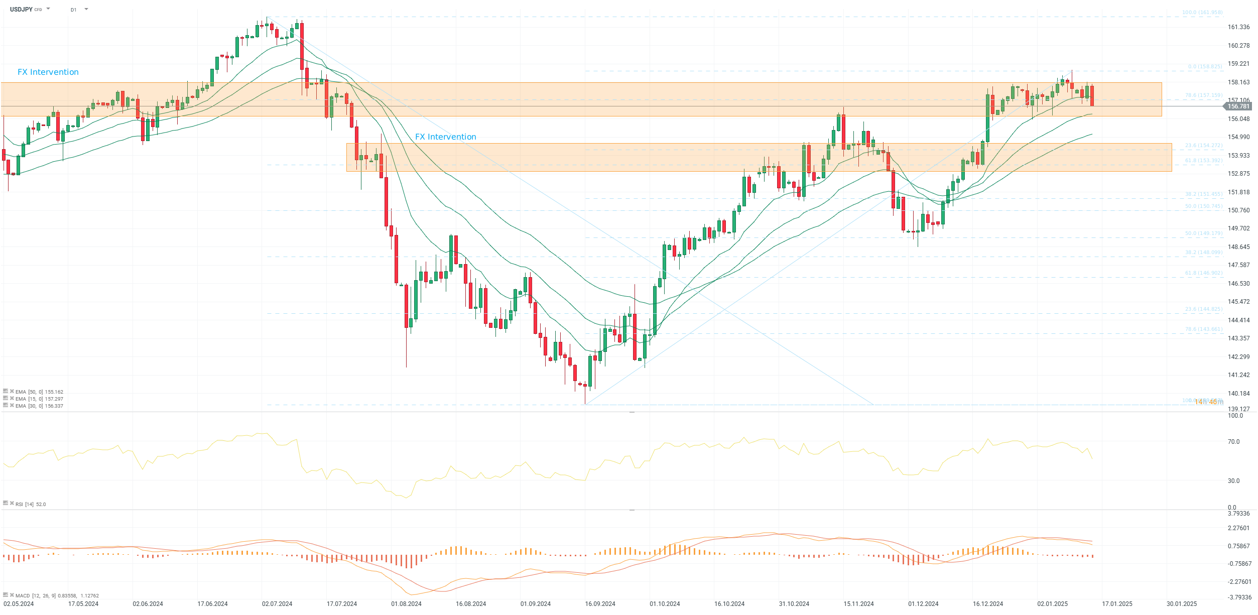 Graf dne - USDJPY (15.01.2025)
