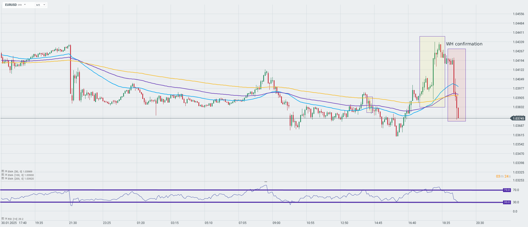 Intradenní Price Action patterny na EUR/USD 23.12.2025