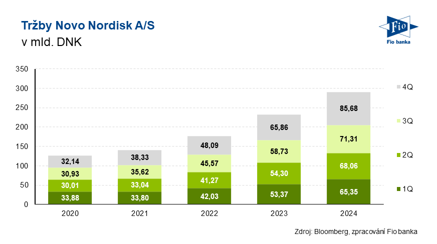 Dánská farmaceutická společnost Novo Nordisk zveřejnila výsledky hospodaření za čtvrtý kvartál roku 2024. Analytiky pozitivně překvapily tržby společnosti, které meziročně v DKK vzrostly o 25 %. Výhled společnost projektuje nad analytická očekávání.