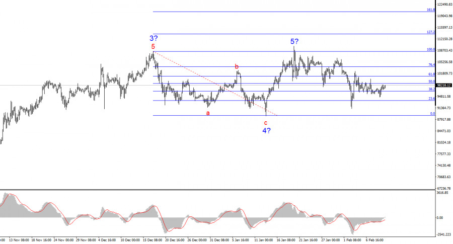 Vlnová analýza BTC/USD na 5. února. Je bitcoin na pokraji kolapsu?