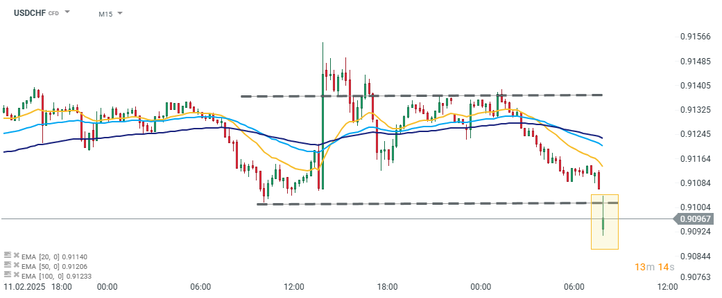 Švýcarsko pokračuje ve zpomalování růstu cen. V lednu činila spotřebitelská inflace meziročně 0,4 %, což je méně než 0,6 % v prosinci. V reakci na tyto údaje se pár USD/CHF bezprostředně po zveřejnění švýcarského CPI vymanil z krátkodobého bočního trendu, na konečnou reakci páru si však musíme počkat; další pokles je stále na stole.