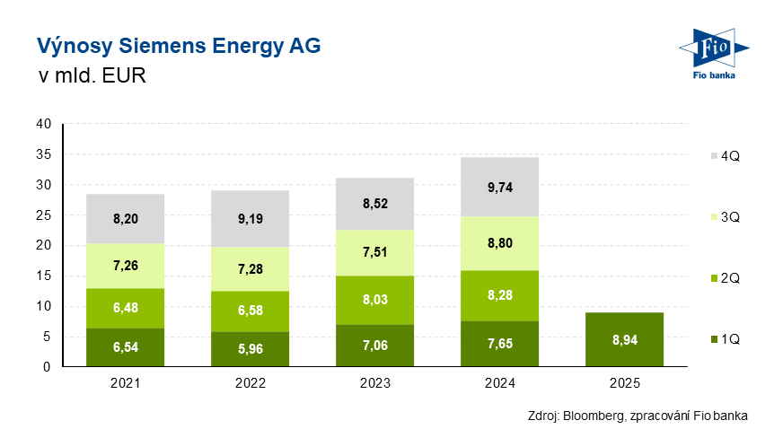 Německá společnost zabývající se energetickou infrastrukturou, Siemens Energy, reportovala výsledky za první kvartál fiskálního roku 2025. Společnost v tomto kvartálu uvedla volný peněžní tok, který se meziročně výrazně zvýšil na úroveň 1,53 mld. EUR. Ve výhledu projektuje růst výnosů o 8-10 % a nulový zisk.