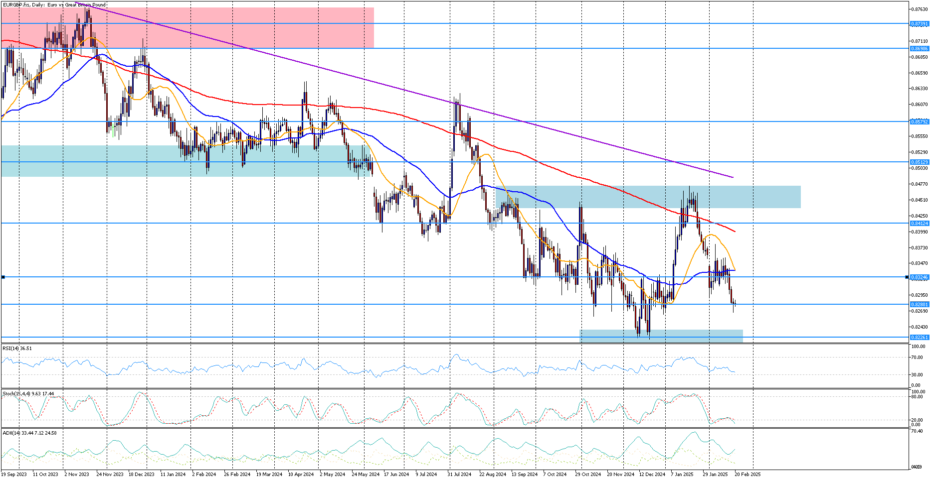 EUR/GBP se od 23. ledna, kdy narazil na rezistenci poblíž klesající trendové linie vycházející z maxima z 2. února 2023, obchoduje směrem na jih. Ačkoli se však pár nachází i pod všemi třemi vynesenými klouzavými průměry, v současné době se snaží překonat klíčový support na úrovni 0,8260. Pokud budou medvědi dostatečně silní, aby se tlačili níže, mohli by se zpočátku zaměřit na minimum z 19. prosince na úrovni 0,8220. Přesto může být k signalizaci jasného pokračování trendu zapotřebí prolomení pod tuto zónu, jelikož by potvrdilo nižší minimum a zavedlo akci do oblastí, které byly naposledy viděny v roce 2016. Dalším supportem může být vnitřní swingové maximum z 3. dubna 2016 na úrovni 0,8120, jehož prolomení by mohlo směřovat k psychologickému kulatému číslu 0,8000. RSI i MACD detekují negativní momentum, což zvyšuje šance, že se vlády opět ujmou medvědi. První z nich leží pod hodnotou 50, zatímco druhý se pohybuje pod nulovou i spouštěcí linií. K tomu, aby se začalo hovořit o obratu býčího trendu, může být zapotřebí rozhodného odrazu a prolomení klíčové bariéry 0,8460. Takový pohyb by potvrdil nejen vyšší maximum, ale také prolomení dvouleté klesající trendové linie. Býci by se pak mohli cítit sebevědomě a vystoupat k vrcholu z 8. srpna 2024 na úrovni 0,8625.