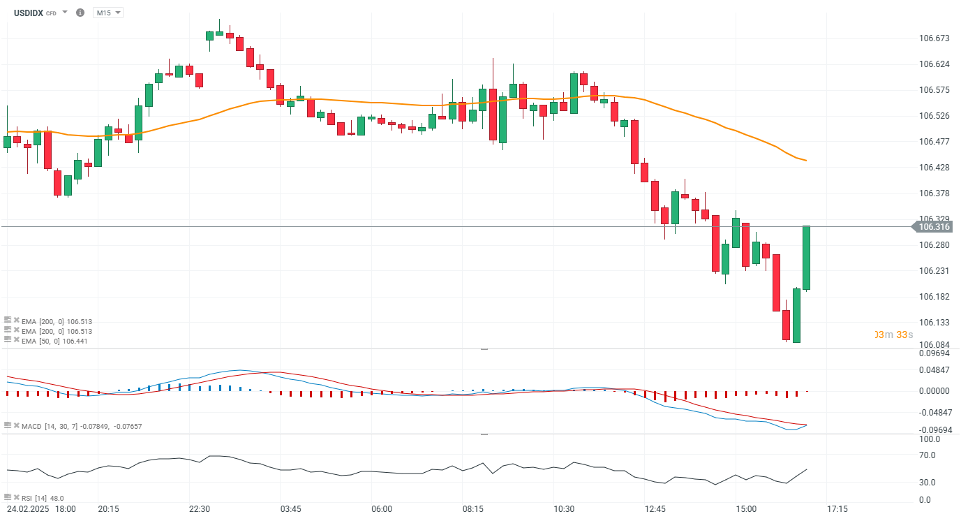 Index amerického dolaru (USDIDX) se zotavil po ztrátách, podpořen nižší než očekávanou spotřebitelskou důvěrou v únoru.