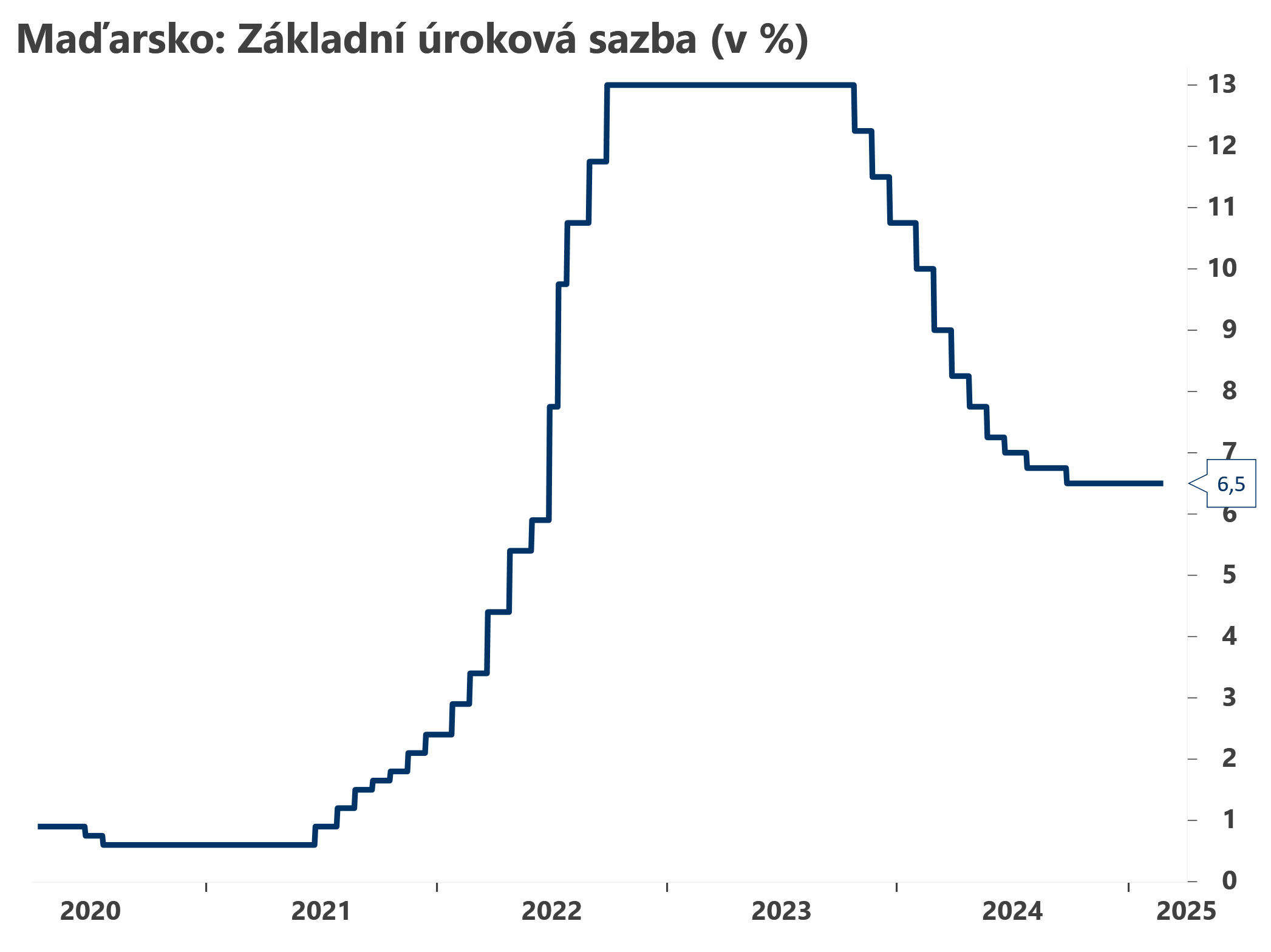 Maďarská centrální banka na svém dnešním zasedání ponechala úrokové sazby podle očekávání trhů na 6,50 %. -