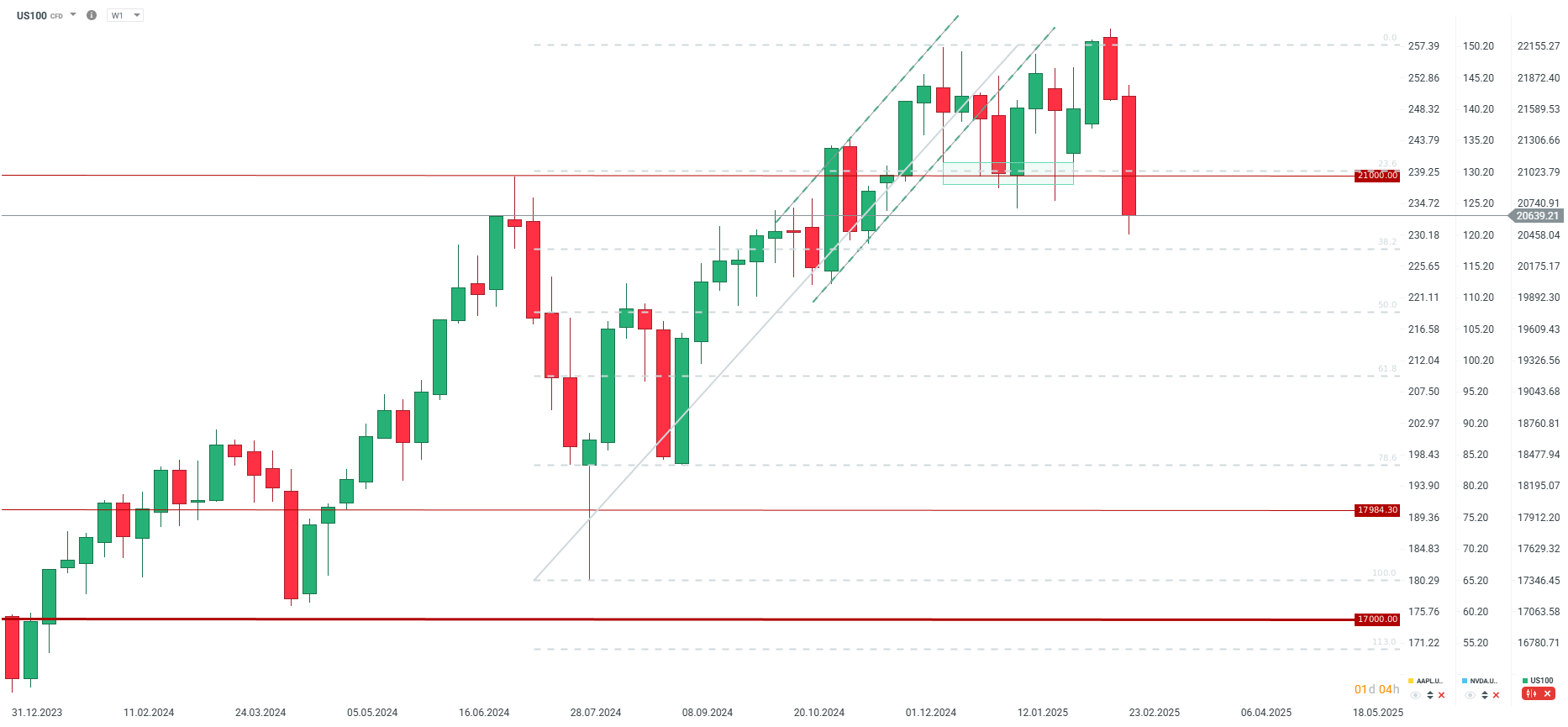 US100 zaznamenává největší pokles od září 2024. Zdroj: xStation5