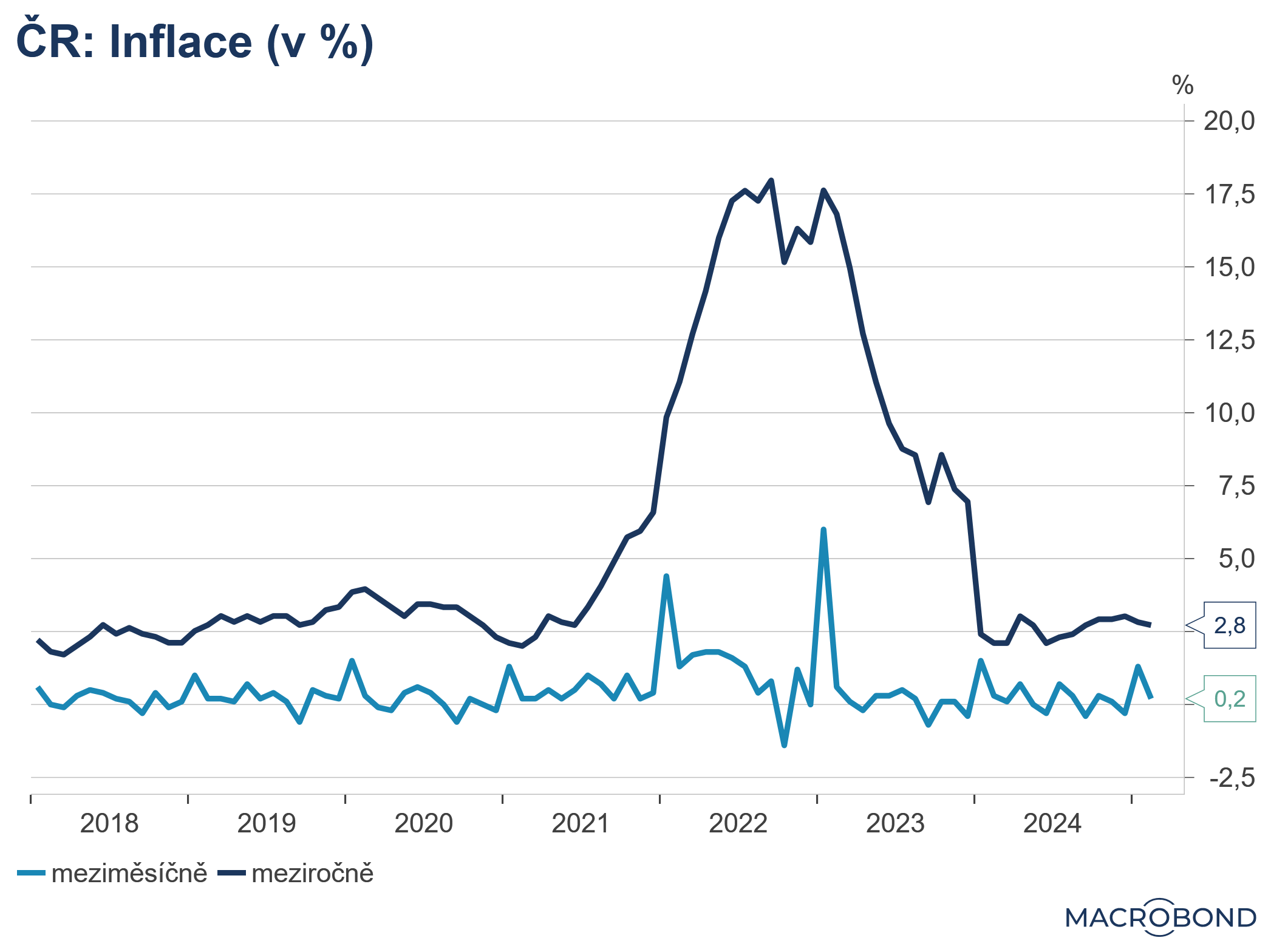 S blížícím se závěrem roku přichází pro Českou republiku pozitivní zprávy. Podle dat ČSÚ zůstala inflace v listopadu na 2,8 %, což odpovídá hodnotám ze října. Očekávání ekonomů, že sezónní vlivy zvýší inflaci až na 3,1 %, se nenaplnila. Růst cen pro české domácnosti tak zůstává v tolerančním pásmu České národní banky (1–3 %). -