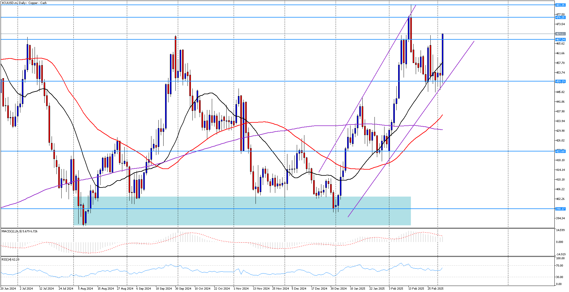 Silný vývoj na mědi v rámci rostoucího trendového kanálu