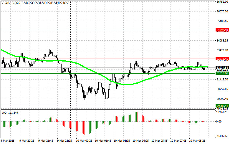 Scénář č. 1: Bitcoin prodejte na úrovni 81 800 USD s cílem poklesu na 79 500 USD. Obchod ukončete na 79 500 USD a při odrazu okamžitě nakupte. Před prodejem při průrazu se ujistěte, že 50denní klouzavý průměr je nad aktuální cenou a awesome oscilátor v záporném teritoriu.