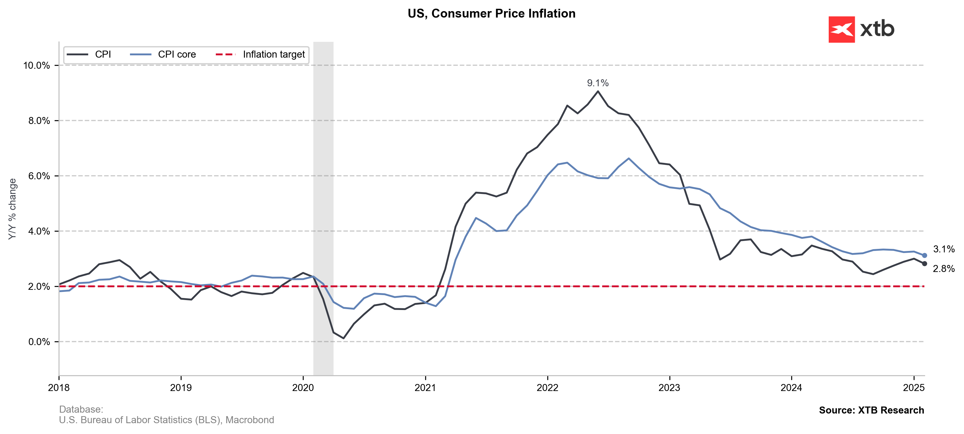 Jasným signálem, že obavy z cel převládají nad pozitivními ekonomickými daty, je pokles hlavních indexů i přes lepší než očekávanou zprávu o inflaci. S&P 500, který po příznivých údajích CPI nejprve vzrostl o 1,3 %, nakonec otočil směr a uzavřel o 0,2 % níže, protože obavy z obchodní války se dostaly do popředí. Nasdaq 100 nejprve prokázal odolnost, ale nakonec oslabil o 0,3 %, zatímco Dow Jones Industrial Average zaznamenal výraznější pokles o 0,86 %.