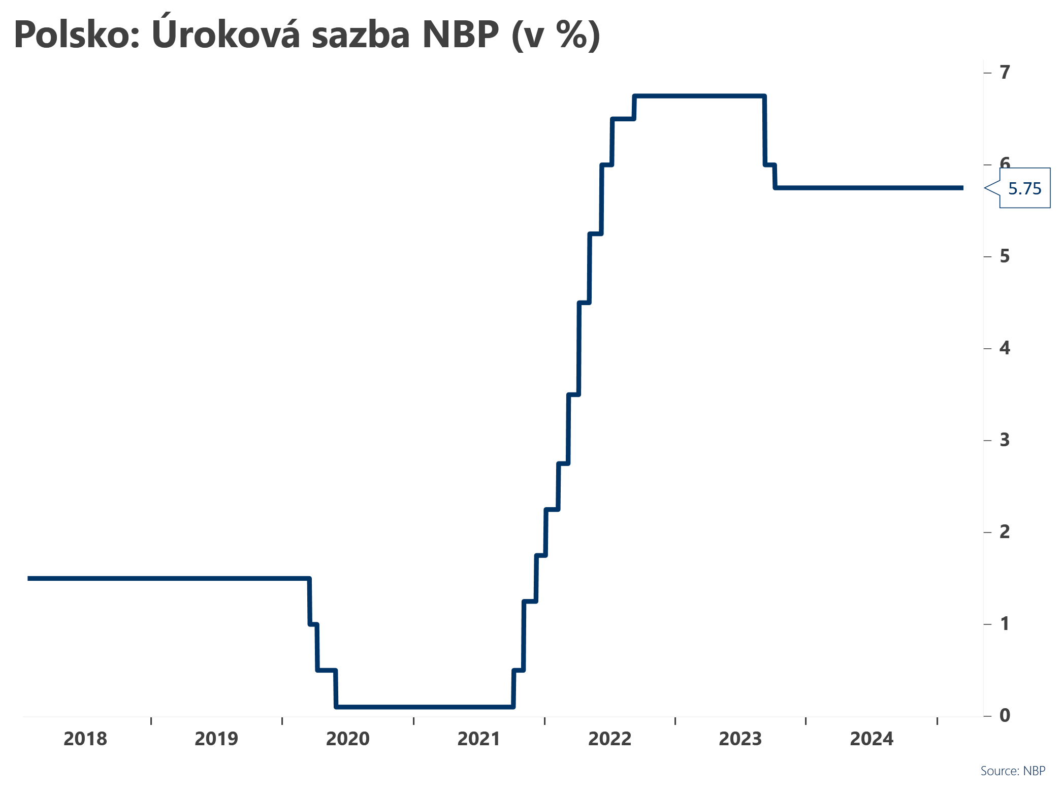 Polská centrální banka na svém dnešním zasedání ponechala úrokové sazby podle očekávání beze změny na úrovni 5,75 %.