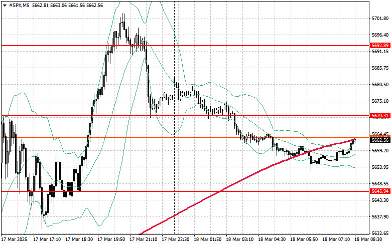 Index S&P 500 nadále klesá. Dnes je hlavním cílem kupců překonat nejbližší rezistenci na úrovni 5 670 USD, což by mohlo otevřít cestu k dalšímu růstu a posunout aktivum k úrovni 5 692 USD. Klíčovým cílem pro býky je také udržení kontroly nad úrovní 5 715 USD, což by posílilo jejich pozici.
