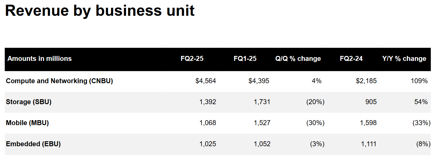 Společnost zaznamenává silnou poptávku po komponentách používaných v datových centrech, které vyvíjejí a provozují umělou inteligenci. Poptávka po tradičnějších čipech pro telefony a počítače byla slabší, ale vykazuje známky oživení. Společnost upozorňuje na tržby z vysokovýkonnostních pamětí (High Bandwidth Memory, HBM), které poprvé dosáhly více než 1 mld. USD.