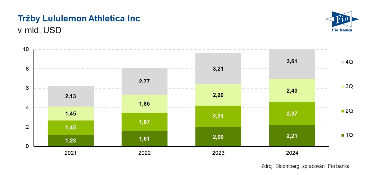 Klíčová slova: USA | Akcie | Bloomberg | Dividendový výnos | Marže | P/E | Riziko | Ukazatel | Výnos | Zisk na akcii | Analytici | USD | Obchodování | Zisk | Výsledky | EPS | Banka | Fio banka | Cena | Fio | Odkup akcií | Cílová cena | Hrubá marže | ROCE | Tržby | Jefferies | Podnikání | Kapitalizace | Výhled | Konsensus | Výnosy | Očekávání | Růst zisků | Zpětný odkup akcií | Čistý zisk | Hospodaření | Vývoj | Tržby společnosti | Růst | Výhled hospodaření | LULU | Lululemon Athletica | Lululemon | Bloomberg Intelligence | Makroekonomický vývoj | Prodej | Společnosti | Společnost | Výsledky společnosti | 3М | Lululemon (LULU) | Akcie Lululemon | Akcie Lululemon (LULU) | Akcie Lululemon Athletica | Petr Veselý | Oblečení | Fio banka, a.s. | Lululemon athletica | Rok 2025 | Rok 2024 | Náklady |