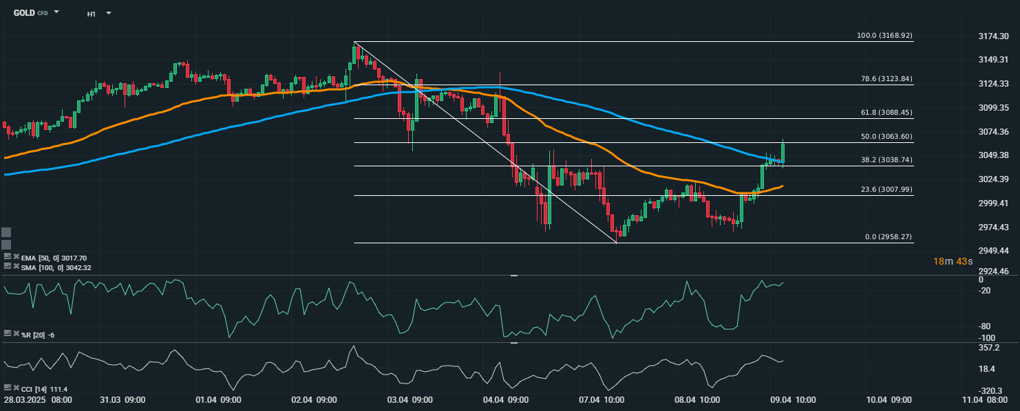 Zlato se po výrazné korekci odrazilo od úrovně kolem 2958 USD a aktuálně ukazuje známky obnoveného růstového trendu. Proražení sestupné trendové linie, která dominovala trhu od počátku dubna, spolu s růstem nad klouzavý průměr EMA 50 (3017,70 USD) a těsně nad SMA 100 (3042,32 USD), představuje důležitý technický signál.