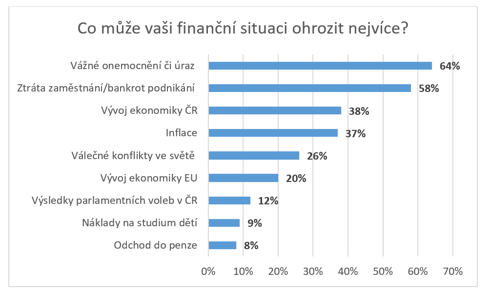 Z čeho mají Češi největší obavy a co by mohlo ohrozit jejich finanční situaci? Na to se mimo jiné zaměřil výzkum finančněporadenské společnosti Swiss Life Select na reprezentativním vzorku české populace.