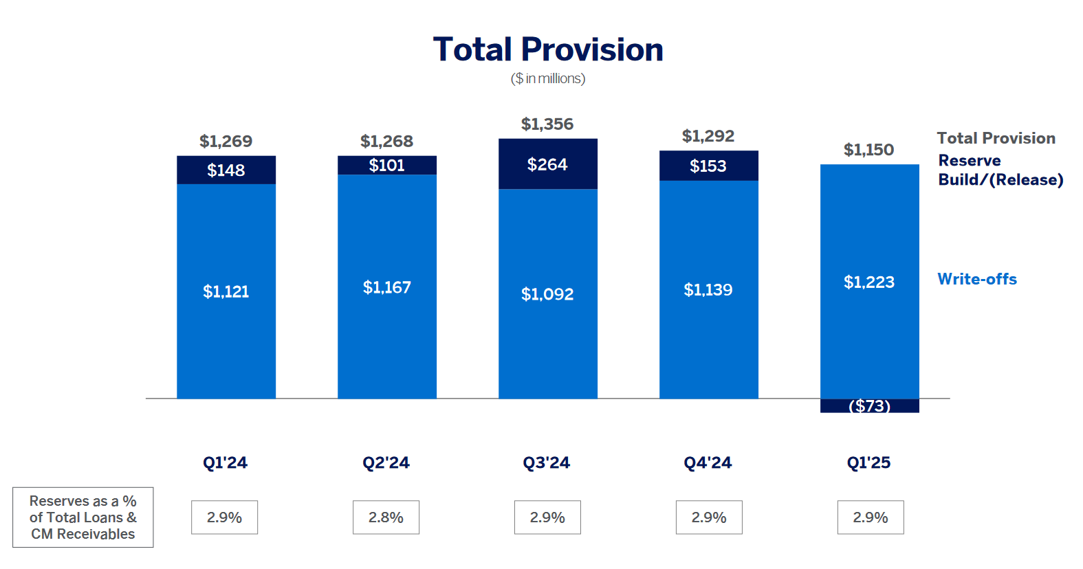 Úvěry na kartách oproti prvnímu kvartálu minulého roku vzrostly o 9,9 % na 139,20 mld. USD, přičemž analytici očekávali 138,9 mld. USD.