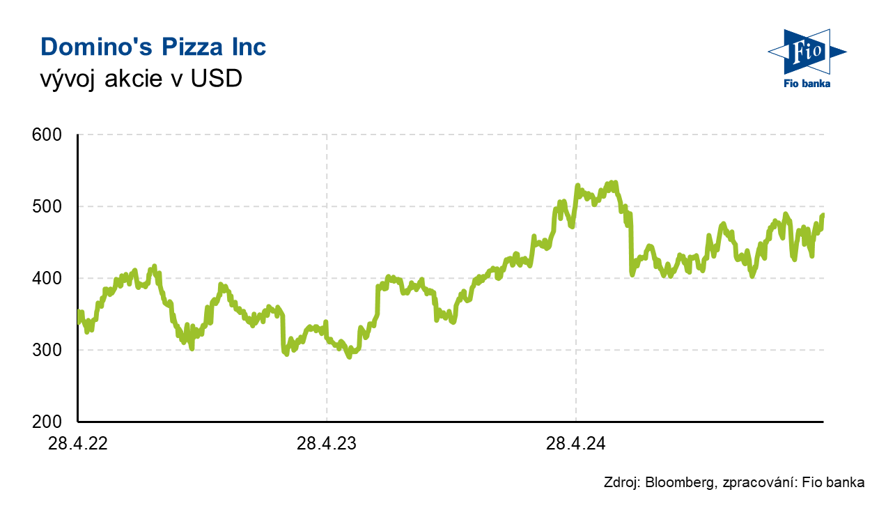 Klíčová slova: USA | Akcie | Bloomberg | CEO | Dividendový výnos | P/E | Ukazatel | Výnos | Zisk na akcii | USD | Obchodování | Zisk | Výsledky | EPS | Banka | Fio banka | Cena | Fio | Cílová cena | Tržby | Hospodářské výsledky | Kapitalizace | Konsensus | Očekávání | Čistý zisk | Generální ředitel | Provozní zisk | Vývoj | Růst | Akcie Domino’s Pizza | Domino’s Pizza | DPZ | Společnosti | Odkupy akcií | Společnost | Výsledky společnosti | 3М | Řetězec | Zpětné odkupy | Vice | Dominos Pizza | Očištěný zisk na akcii | Fio banka, a.s. | Řetězec rychlého občerstvení | Domino’s | Pizza | Akcie Domino’s | Michal Šnobl |