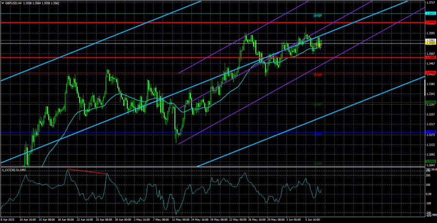 V pondělí pár GBP/USD nevykázal žádné výrazné pohyby. Vzhledem k současné situaci ve Spojených státech je však těžké si představit, že by dolar měl prostor pro růst. Ukazuje se, že ekonomický útlum, obchodní válka, zhoršující se vztahy s mnoha zeměmi (včetně spojenců), kontroverzní rozhodnutí týkající se mezinárodních dohod a organizací, zákon "One Big Beautiful Bill" a neúspěch ve zprostředkování míru mezi Ukrajinou a Ruskem byly jen začátkem. Tyto problémy byly pouze prvotními signály potíží, které zasáhly mnoho lidí – avšak ne tak tvrdě a brutálně jako současné události.
