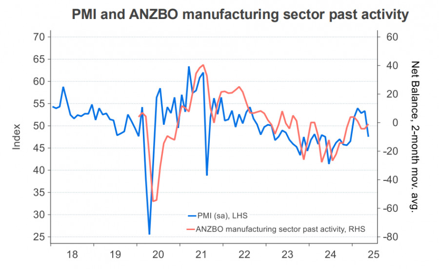 Jak už jsme upozornili, ekonomika Nového Zélandu aktuálně vykazuje známky slabosti, a nejnovější data tento obrázek nijak nezpochybnila. Indexy PMI se v květnu prudce zhoršily – index ve výrobním sektoru klesl z 53,3 na 47,5 bodů, čímž se dostal do pásma kontrakce, a index ve službách klesl ještě výrazněji – z 48,1 na 44,0 bodů.