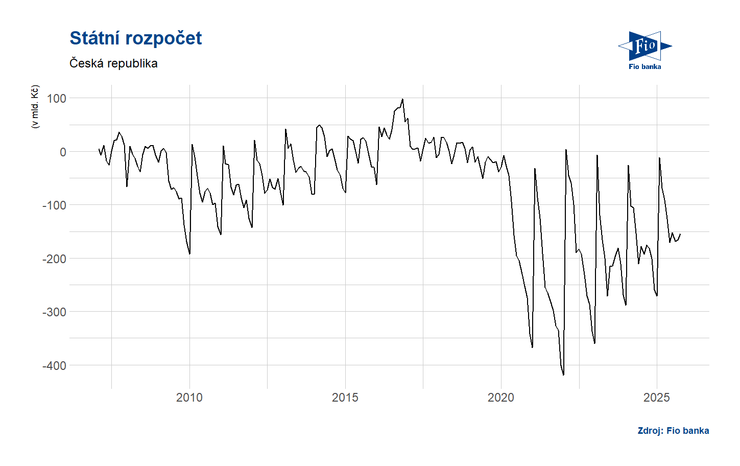 Bilance státního rozpočtu (srpen): aktuální hodnota: -165,4 mld. Kč. -