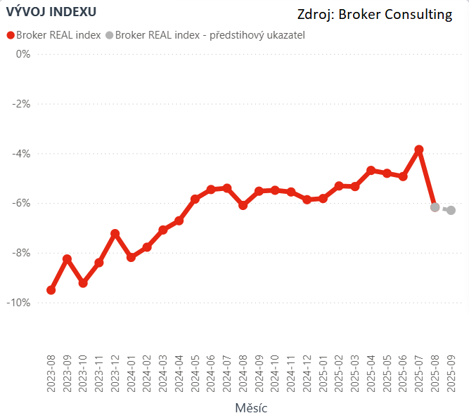 Společnost Broker Consulting přináší výsledky svého jedinečného ukazatele vývoje realitního trhu - Broker Consulting REALIndex za období leden až září. Ten sleduje, za kolik se nemovitosti na trhu nabízejí a za kolik se nakonec skutečně prodají. Do výpočtu vstupují jen reálně uzavřené obchody zapsané v katastru, takže výsledky nejsou zkreslené neuskutečněnými nabídkami. Výpočet je navíc očištěn o extrémně vysoké či nízké částky a zahrnuje i developerské projekty prodané prvním majitelům. Díky tomu REALIndex nabízí věrný a přehledný obraz o tom, jak se potkávají představy prodávajících s realitou kupujících. Zároveň ukazuje, zda je trh nemovitostí v útlumu, nebo se naopak nachází v období růstu.