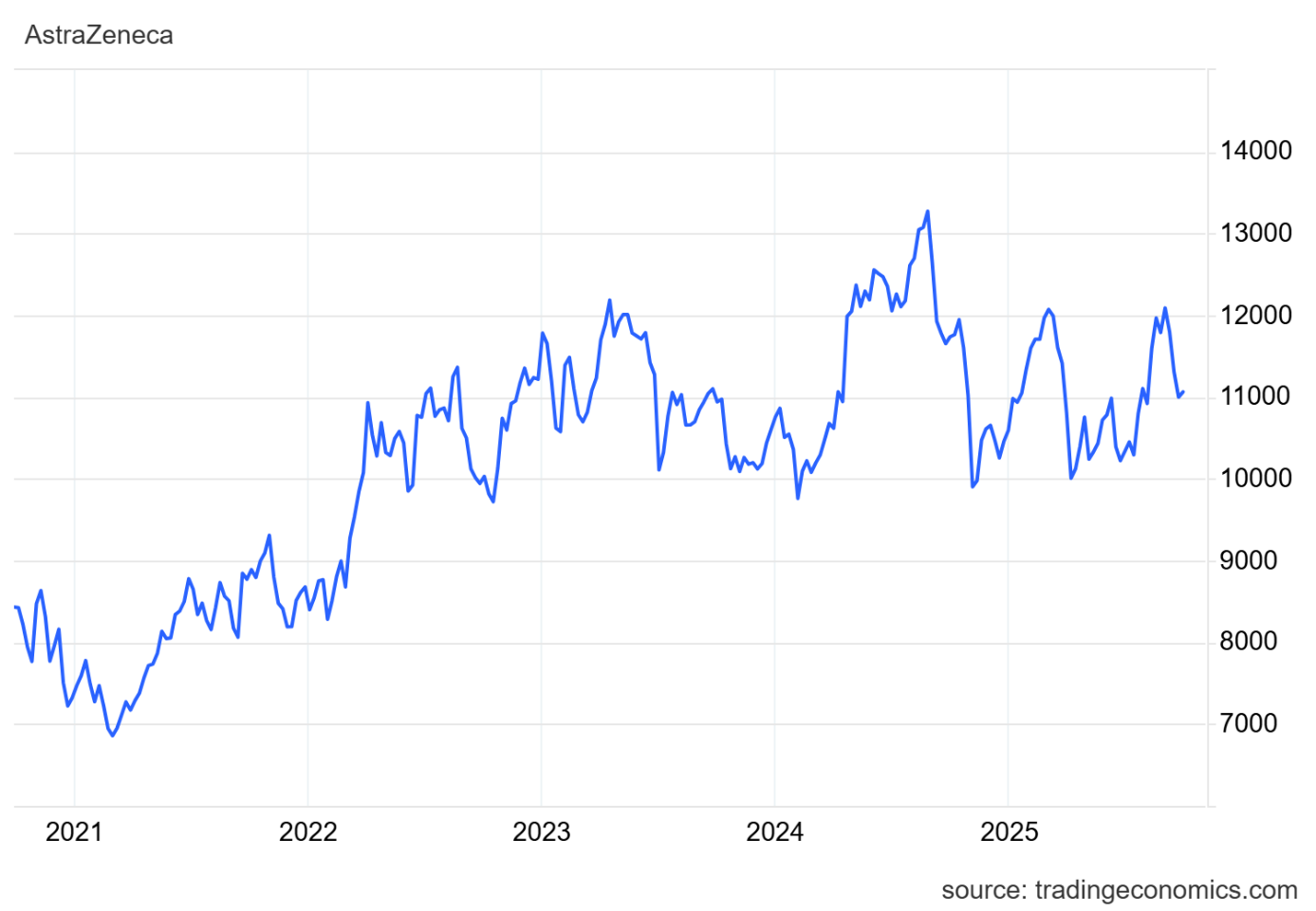 Výkonnost akcií AstraZeneca za posledních pět let